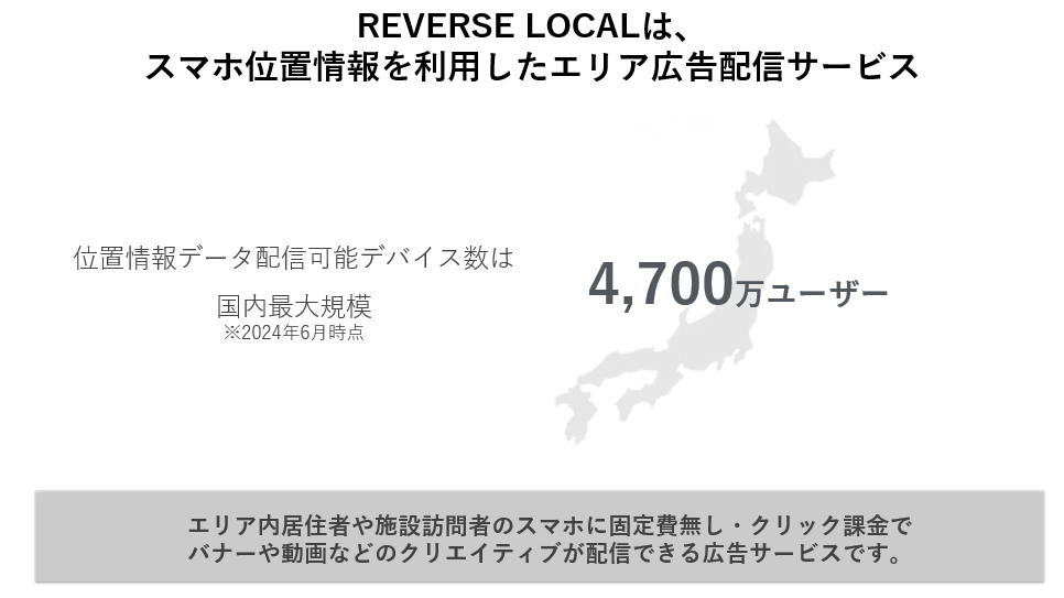 REVERSE LOCALは、初期費用無料・クリック課金で配信ができるエリアターゲティング広告です。