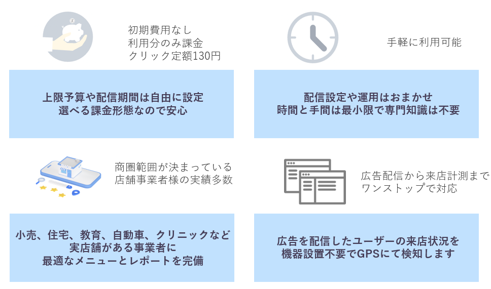 クリニックなど実店舗がある事業者様に最適な広告配信サービスです。