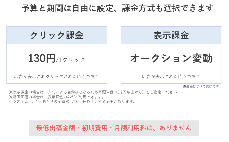 初期費用無料で、定額130円(クリック課金)で実施可能。